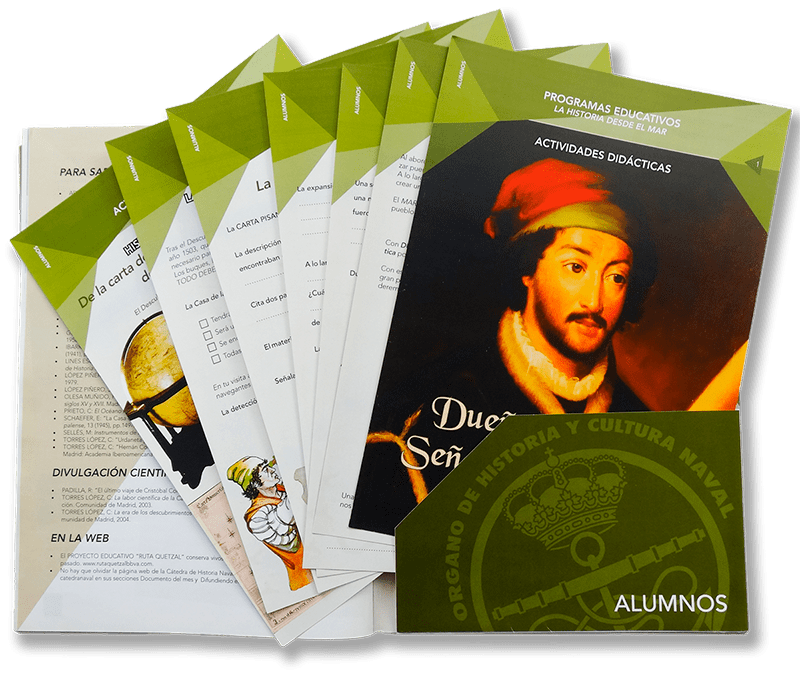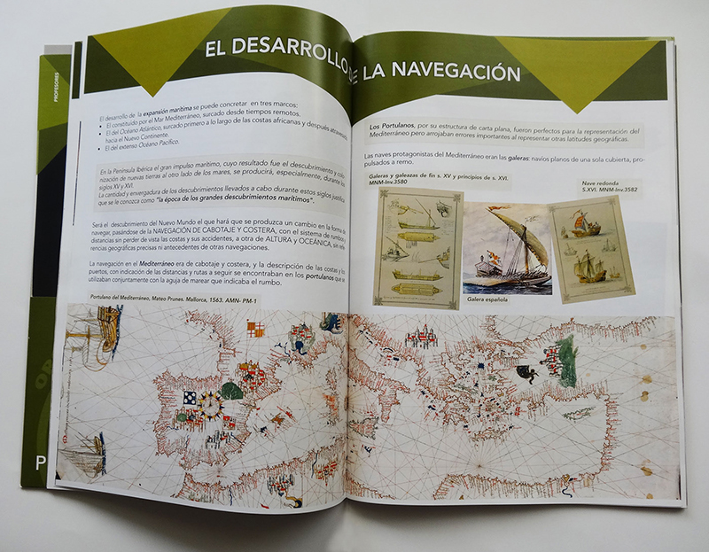 The second book has its context from ‘Dueños del Mar, Señores del Mundo’ exhibition, covering Spain’s history from XV to XVII Century. As it is a series of books I kept the same design, as the Museum wanted a ‘leaf’ green colour, I just changed the main colour in different shades of that kind of green.