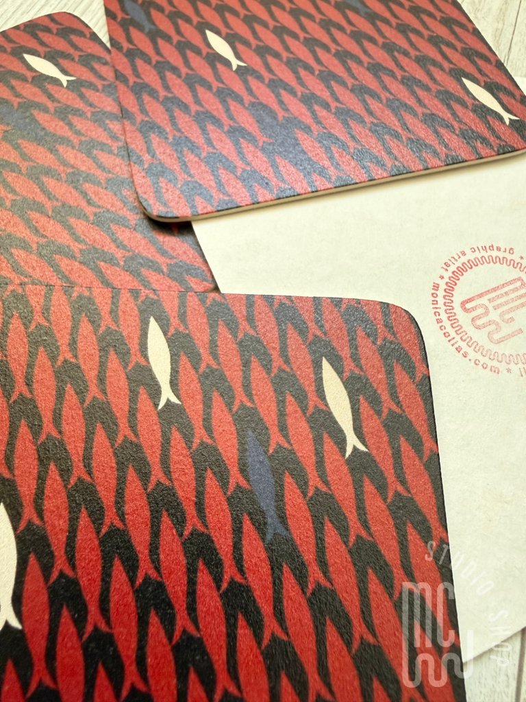 As I loved the result, I worked on another version of the coaster, using red as the main colour and adding letters.