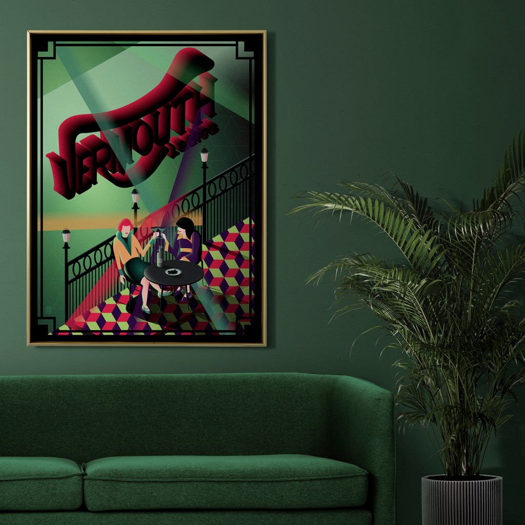 I took references from Barcelona’s Modernismo lettering, which I really love, to create the one I used in this artwork.